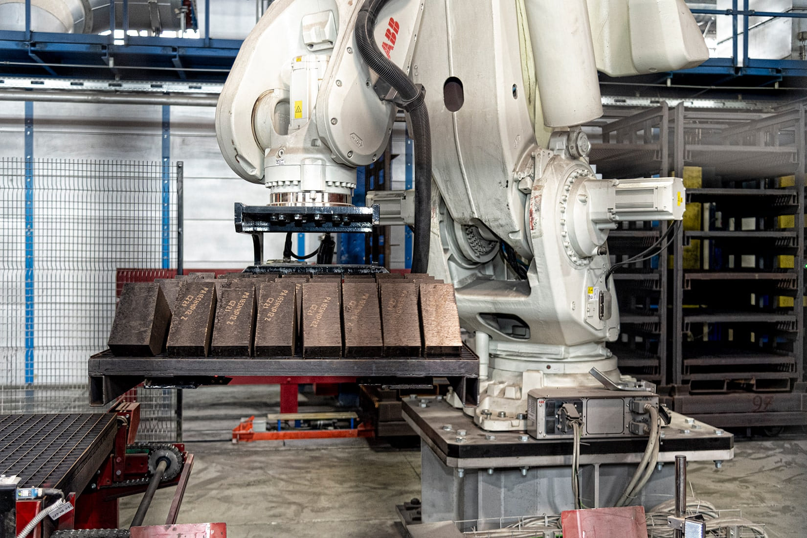 - 2 пресса пятого поколения, оборудованные робототехни-ческими комплексами (РТК) для садки сырца непосредственно на печные вагоны, что исключает излишние перемещения изделий